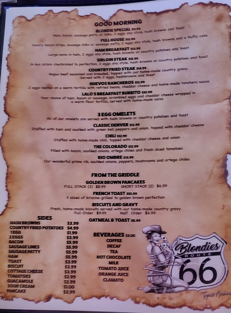 Blondies Route 66 Menu